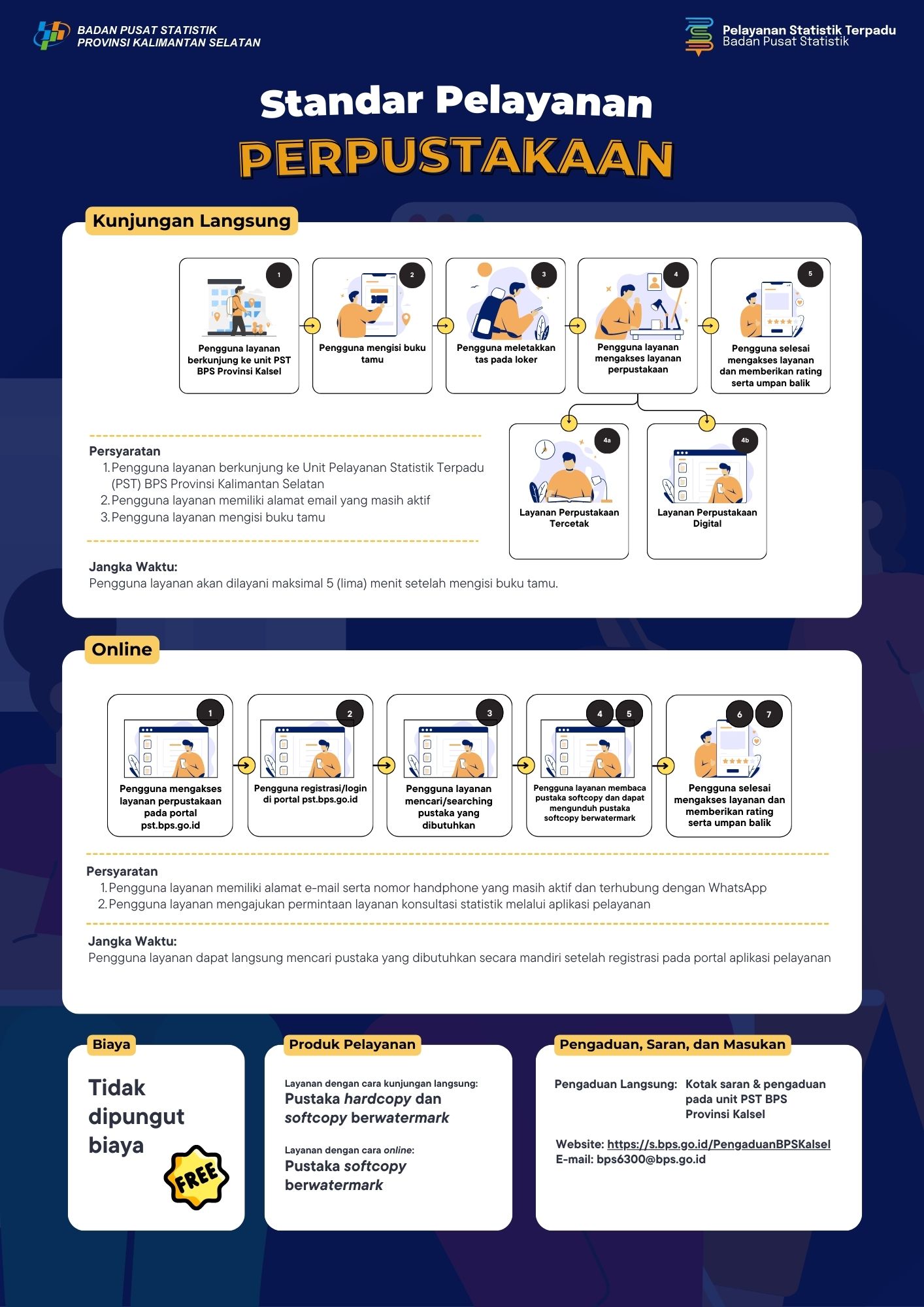 Penyelenggaraan Standar Pelayanan Statistik Terpadu pada Badan Pusat Statistik Provinsi Kalimantan Selatan merupakan implementasi dari pelaksanaan tugas dan fungsi Badan Pusat Statistik, yang bersifat pelayanan langsung (offline) dan tidak langsung (online), yang meliputi: