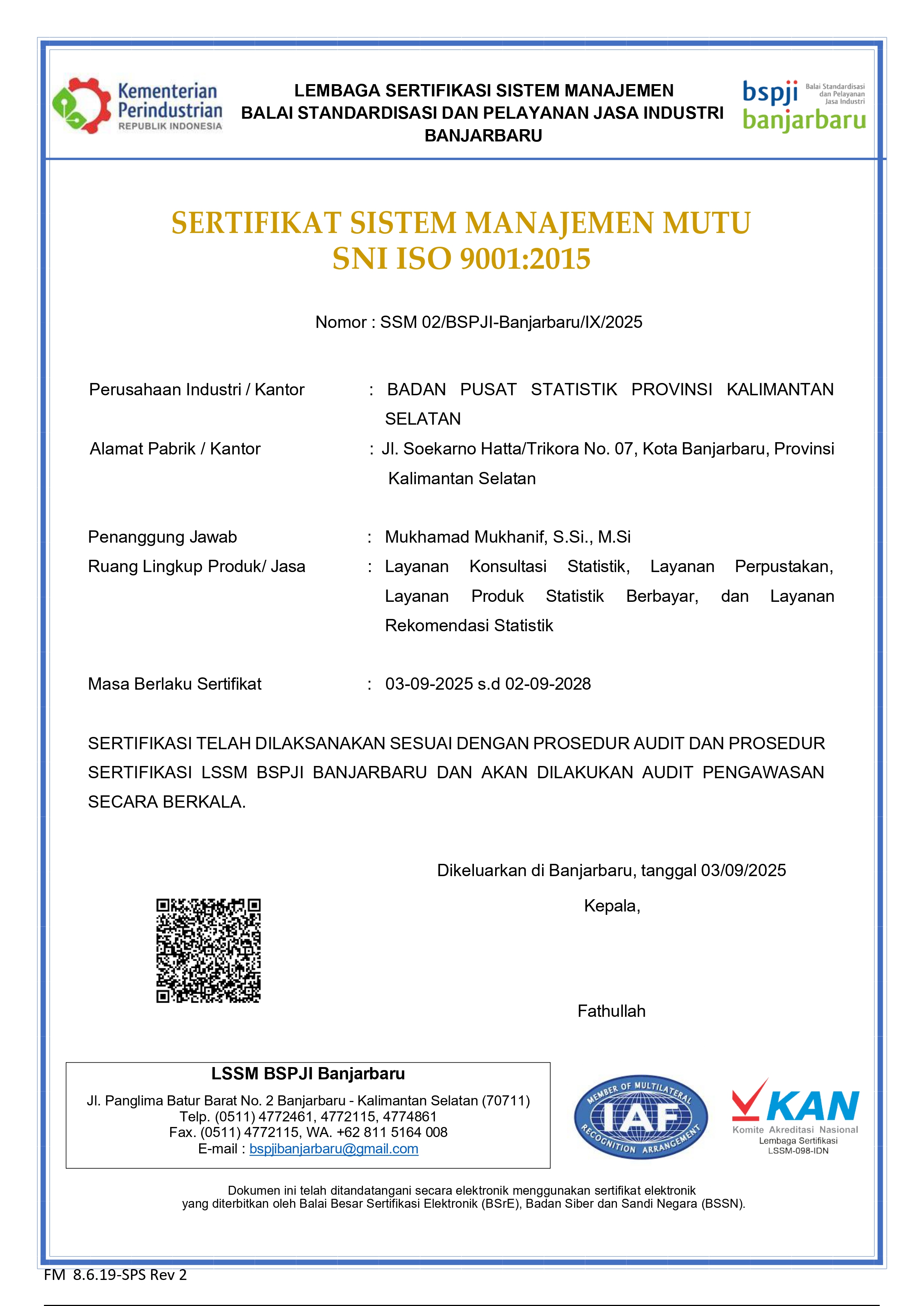 | Pelaksana Kegiatan | : | BPS Provinsi Kalimantan Selatan (Tim Pelayanan Statistik Terpadu) |