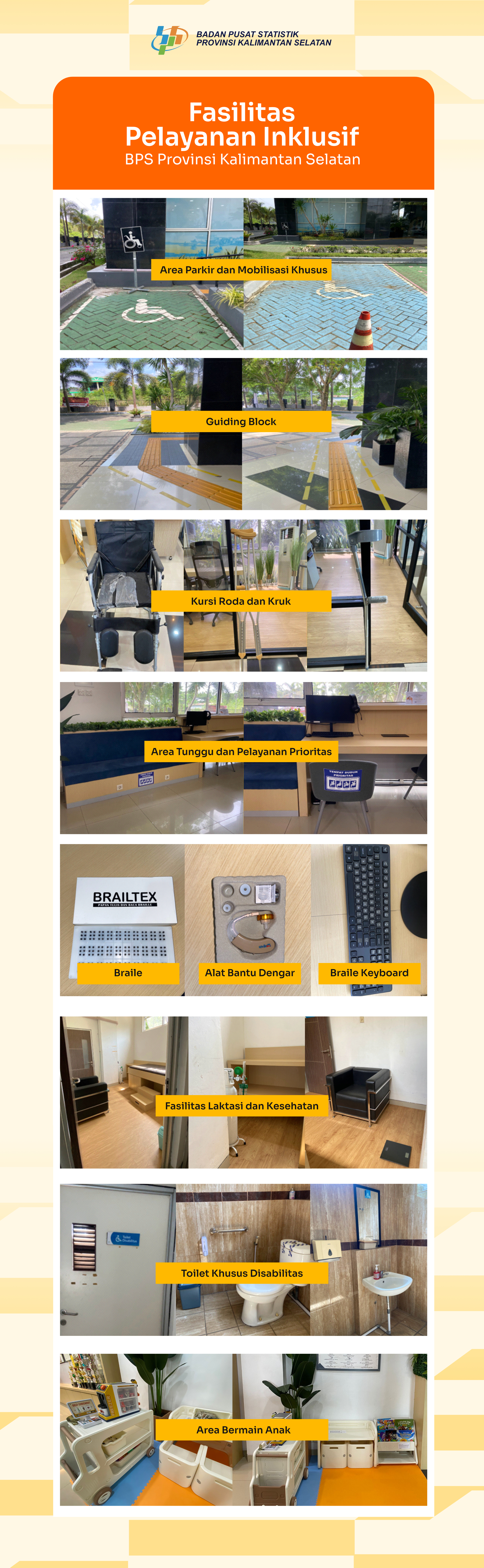 Dalam memberikan pelayanan yang inklusif kepada seluruh konsumen data, BPS Provinsi Kalimantan Selatan berupaya untuk memberikan fasilitas yang dapat menunjang kebutuhan-kebutuhan khusus, berikut dokumen layanan berkebutuhan khusus yang disediakan