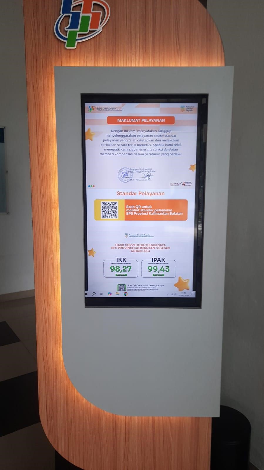Adapun dalam menetapkan standar pelayanan dan maklumat pelayanan, Kepala BPS Provinsi Kalimantan Selatan telah menetapkan Keputusan Kepala BPS Provinsi Kalimantan Selatan Nomor 309 Tahun 2024 tentang Standar Pelayanan Statistik Terpadu pada Badan Pusat Statistik Provinsi Kalimantan Selatan.