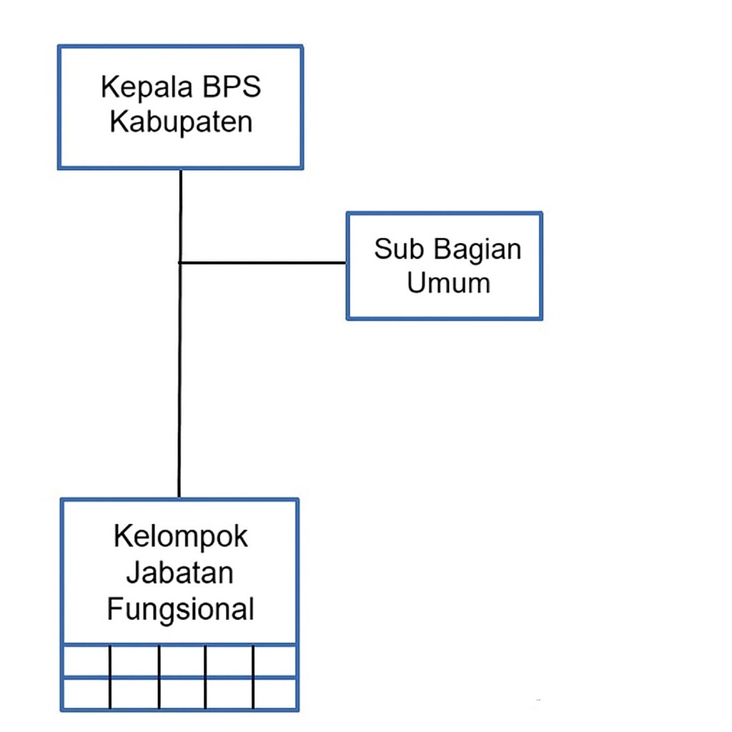 Berdasarkan Peraturan Kepala Badan Pusat Statistik Nomor 8 Tahun 2020 tentang Organisasi dan Tata Kerja Badan Pusat Statistik Provinsi dan Badan Pusat Statistik Kabupaten/Kota. Susunan organisasi BPS Kabupaten terdiri dari: